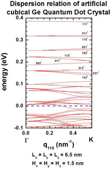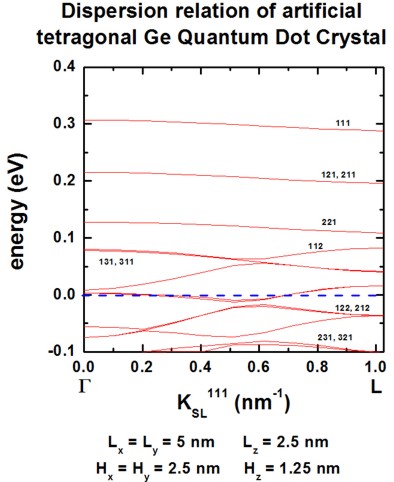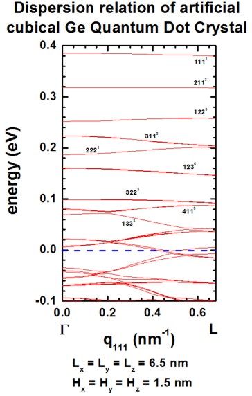 Figure 2.5.143 Superlattice dispersion along [111] for heavy-hole states in an artificial tetragonal Ge quantum dot crystal.