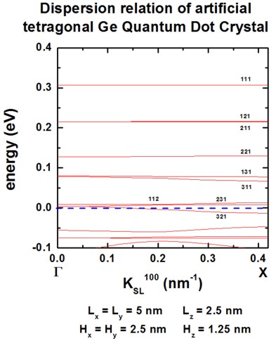 Figure 2.5.141 Superlattice dispersion along [100] for heavy-hole states in an artificial tetragonal Ge quantum dot crystal.