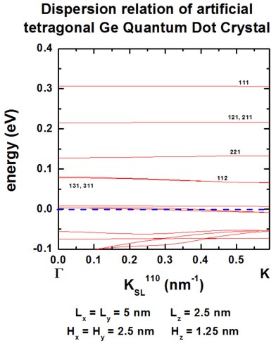 Figure 2.5.142 Superlattice dispersion along [110] for heavy-hole states in an artificial tetragonal Ge quantum dot crystal.