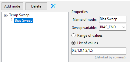 1. To create a nested sweep, select a parent node before clicking on the Add node button. The new node will be nested below the selected one. (e.g. “BiasSweep”, Figure 1.1.13)