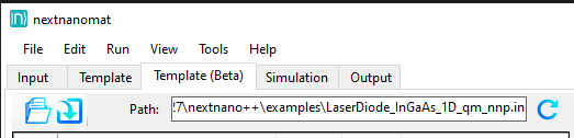 The Template (Beta) tab has a similar functionality to the Template tab. It allows convenient sweeps of an input file through the use of variables. In comparison to the standard Template feature, the Beta version allows nested sweeps of multiple variables. Its use is intended for experienced users who need to investigate their structure in complex dependency of more than one variable.