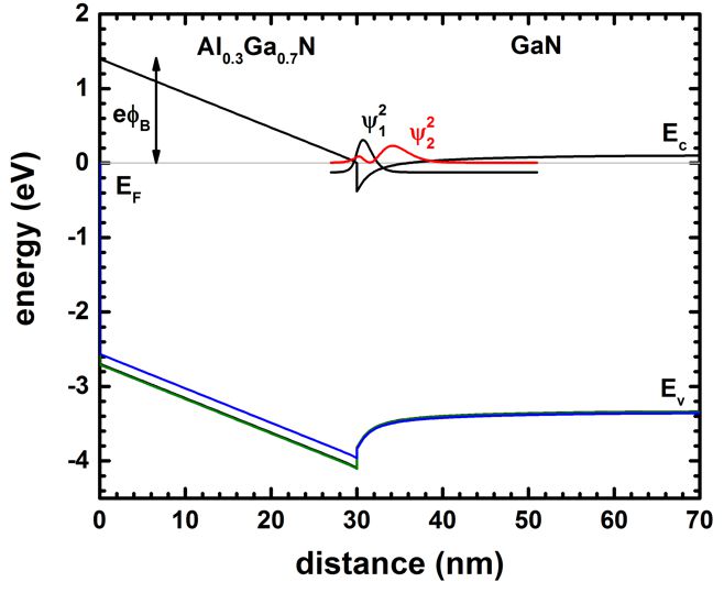 For this one-dimensional simulation of an AlGaN/GaN heterojunction field
